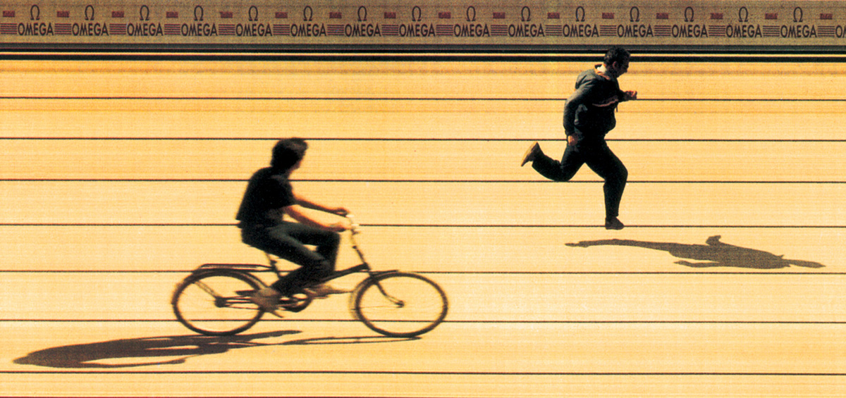 Although photo-finish images give us many reasons to doubt their truthfulness by deforming and contorting their subjects and by stretching our conceptions of how a photograph relates to time, those things matter very little when the purpose of the image is to determine the order of a race finish with an accuracy that far surpasses that of our own eyesight. Studies have determined that the human eye can accurately register no more than four images in a second, compared with the photo finish’s recording speed of 1/2,000th of a second. As swimmer Nancy Hogshead, who won the gold medal in the 100-meter freestyle at the 1984 Los Angeles Olympic Games, observes, “When you win a gold medal by a hundredth of a second, you’re happy you didn’t leave it to error.”[7]