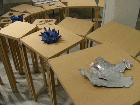 An installation by Uqbar Foundation (a collaboration between Mariana Castillo Deball and Irene Kopelman), “Zeno Reminder” uses the Futurist credo that machines will improve human efficiency and speed to play with the bonds and ruptures between nature and technology. Sculpture-structures inspired by Futurist artist Fortunato Depero will serve as a setting for an array of objects—including sculptures, drawings, and paintings—that pose the question: “What would the style of a creative automaton be?” Probably a “spasmodic machine,” one that feels the need to produce disorder, turning its own codes upside down. Like such a machine, our technological culture must “fail” if it is to succeed, for its very failures constitute that which it is trying to measure, harness, or predict. If the predictions of science were completely exhaustive, would nature become technology, and vice versa?