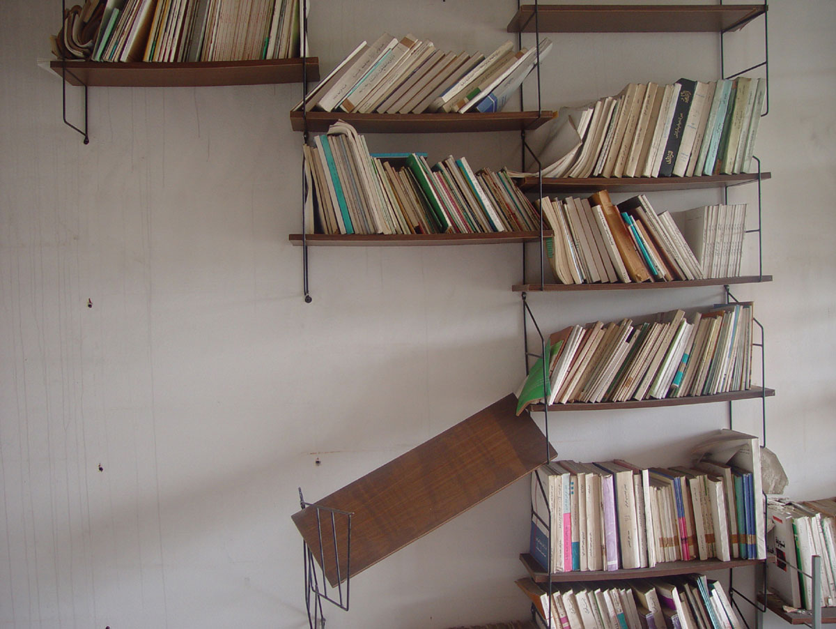 Of course the choice to view this house on Tchaikovsky Street as an aesthetic object is clearly more than just a question of taste. Architecturally nondescript, politically all but nullified, neither entirely empty in the present nor undeniably haunted by its past, it’s almost as though the building were holding its tongue. Not as though its tongue had been torn out, not quite—though the hanging curls of wallpaper tempt grim associations. Nor is it exactly speaking in tongues, though the books in many languages scattered on the library floor silently babble reminders of Babel’s toppled tower, whose legendary location is just west of Baghdad. Rather, behind its blank façade this building seems simply to have fallen silent, resting its tongue like the chiffon curtain resting patiently on the chair in the reception hall, apprehensively tasting the wreckage of history that surrounds it, as reticent and elegant as Klee’s angelus novus (as Benjamin imagines it). Sovereign yet stateless; autonomous but abandoned; free yet strangely tasteless—suspended between senses and concepts that aren’t quite mutually exclusive yet still demand a choice, affirmation or refusal of a possibility that itself comprises hardly more than a chance to enter the “topological zone of indistinction” (Agamben) between art and politics, nature and history, freedom and bare life.