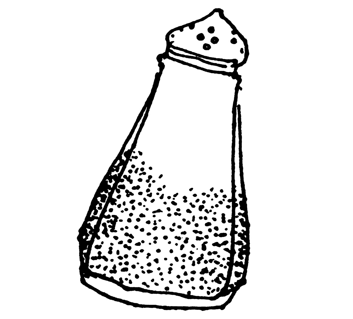 Pepper is altogether more flighty, becoming an adjective or verb applied to what is intermittent or scattered. Its potency goes beyond the palate, pepping up libido according to the legendary appetites of latter-day troubadours or wince-making modern sex recipes; peppercorns were found stuffed up the nostrils of Rameses II, perhaps to bring him vigor in the afterlife. The engorged shape of the pepper pot, meanwhile, lends itself to many a visual analogy, from Monty Python’s dumpy old women of Little England to the je ne sais quoi of the playboy Porfirio Ruberosa. Salt’s sexual connotations are also rampant—“salacious” comes from the Latin salax, a man in love, or a “salted state.” For psychoanalysis, the misfortune of spilling salt is that of premature ejaculation.
