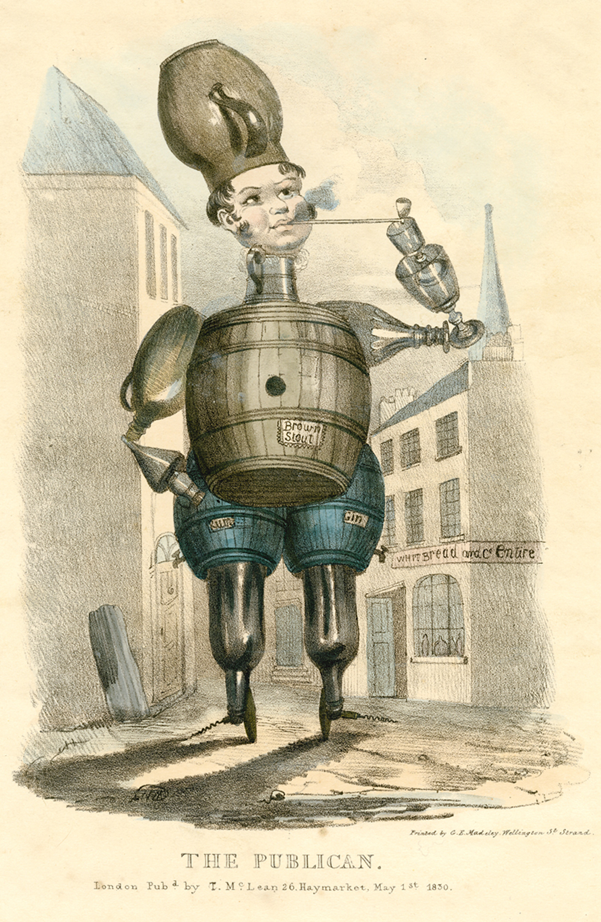 In the late seventeenth century, it was not the drinker that the brewers were trying to deceive. It was the government, or, more precisely, the excise agents who made the rounds between England’s myriad small-scale breweries and assessed taxes on their frothy produce.[2] Ale and beer,[3] dietary staples for the early-modern Englishman, became the object of excise taxes in 1643, during England’s Civil War (along with everything from copper wire to eels used as bait by fisherman). Though formulated as a frantic solution to a wartime fiscal crisis, the taxes on brew became a primary source of nourishment for the unprecedented “military-fiscal” power Britain would assemble in the eighteenth century. For many Britons, the excisemen were the first visible representatives of Britain’s nascent bureaucratic state. Those officers checked in on brewers at mandated times, “gauged” (measured volume) and “tasted” (assessed strength) their produce, and issued the requisite tax bills. The vessels in which beer was produced quickly became sites of contestation, as brewers and excisemen fought bitterly to control the vats and the bitter liquids bubbling inside them.